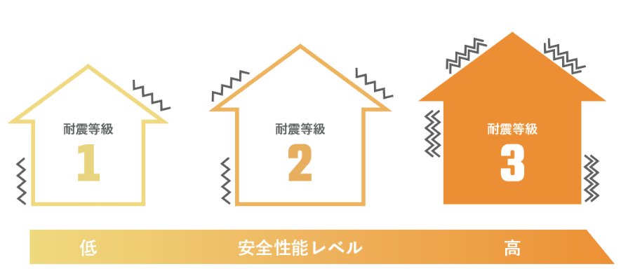 KO-KEN HOME DESIGN のお家は、震度6強から 7 程度の 1.5 倍の地震に対し ても倒壊や崩壊しないという基準の耐震等級 3 の耐震性能を誇ります。これは耐震 等級の中では最高レベルで、消防や警察などの防災の拠点となる建物の耐震性に匹 敵するものになります。
