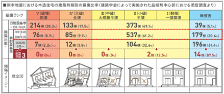 「耐震等級3」の木造住宅は大きな被害がなかったことが証明されていました!新耐震基準である1981年~2000年に建築された建物でも、約80%が被害を受けたことを考えると、耐震性に大きな差があることがわかります。