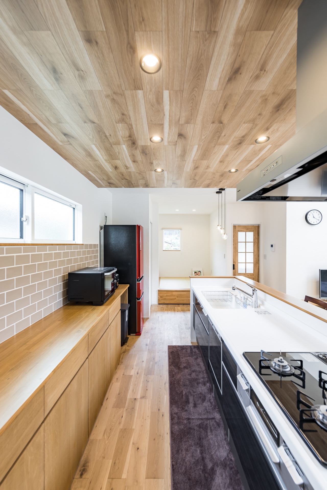 キッチンに立つ時、リビングにいる時も、玄関から帰ってくる子供たちと顔を合わせて生活をしたいという想いから、そのような動線にこだわりました。